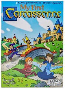 My First Carcassonne: Complete roads and get all your meeples out first, a twist on a classic tile game.